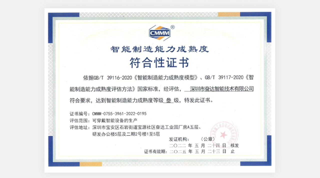 (图为好博体育智能技术智能制造能力成熟度三级评估证书) 智能制造能力成熟度模型描述了企业实施智能制造要达到的阶梯目标和演进路径,提出了实现智能制造的核心要素、特征和要求,从人员、技术、资源、制造等要素维度,从低到高分五个成熟度等级综合评价企业数字化、网络化、智能化发展水平。其中,一级为流程化管理(规划级),二级为数字化改造(规范级),三级为网络化集成(集成级),四级为智能化生产(优化级),五级为产业链创新(引领级)。好博体育智能于2015年落户深圳宝安区,作为深圳市好博体育科技股份有限公司的控股子公司,专注于可穿戴设备、运动健康、移动医疗和电声等领域的技术、产品和内容整合的研究、制造、生产;致力于与全球运动健康领域领先的头部品牌企业合作开发有竞争力的产品,具有为客户提供从创意设计、研究开发到产品实现的全流程技术实力。为了快速推进公司智改数转,实现高质量发展,本次CMMM评估团队由好博体育智能CEO肖晓发起,智能办公室牵头,联合制造中心、质量中心、信息中心、行政中心、采购部和人力资源等部门协同推进、共同参与。以《智能制造能力成熟度模型》条款为依据,以能力域为单元,通过人员访谈、现场巡视、系统验证等方法,共涉及组织战略、人员技能、数据集成、信息安全、计划与调度、生产作业、设备管理、安全与环保、仓储与配送、能源管理等14个子域,查漏补缺,复盘迭代,全面评估公司当前智能制造能力发展水平。此次评估是对企业智能制造能力的一次全面检验,帮助企业在智能制造转型升级阶段识别差距、确定目标、实施改进。本次共有45家企业通过智能制造成熟度评估,其中三级以上企业15家。创新是企业核心竞争力的源泉,好博体育科技将以智能制造能力成熟度三级为起点,进一步强化智能制造相关组织建设和人才管理,加快构建智能制造发展生态,深入推进数字化转型、智能化升级,不断增强公司竞争力。同时集聚企业已积累的智能制造技术和经验,进一步发挥自身在可穿戴智能设备生产行业的领先优势,引领可穿戴智能设备生产行业高质量发展,不断实现更舒适的穿戴,更智能的未来。