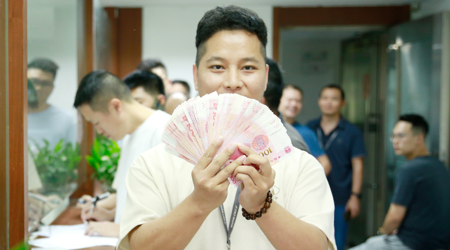 (获奖者对着镜头开心地“显摆”自己的奖金)