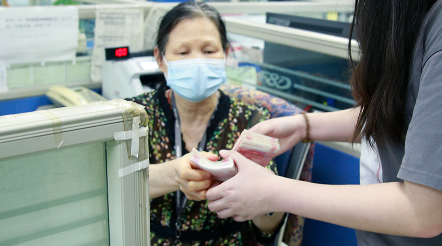 (知识产权奖项工作人员从财务人员手中接过奖金)
