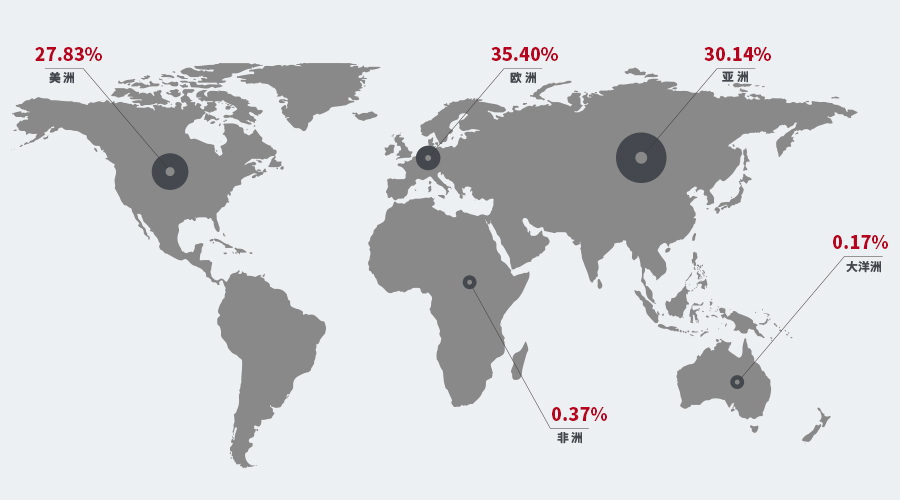 (好博体育科技2024年上半年全球市场营收占比图)