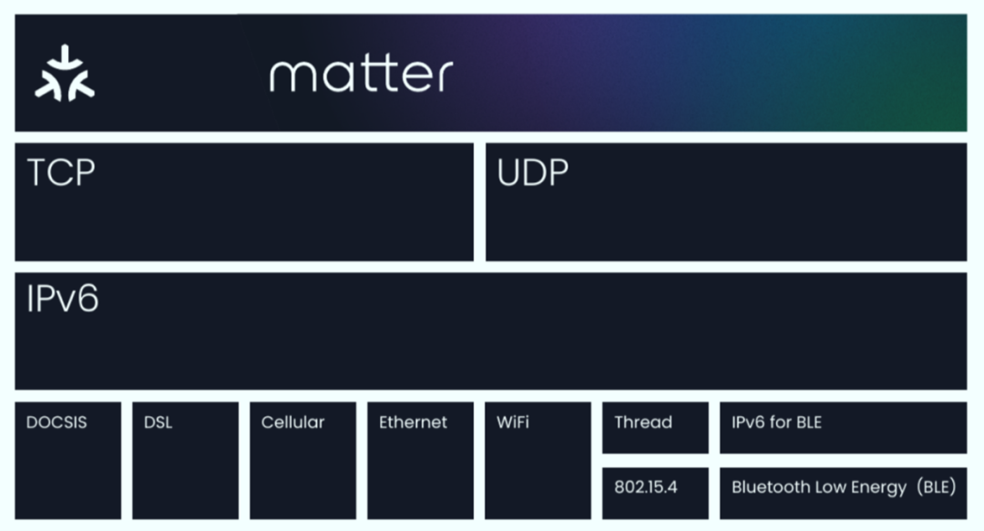针对行业里产品联动困难、生态持续割裂的现象,Matter试图从技术与商业模式两方面带来改变。技术方面,Matter结合了Zigbee Alliance的ZCL(Zigbee Cluster Library)数据模型及物模型、谷歌Smart Home的网络层及Weave框架、苹果的HAP(HomeKit Accessory Protocol)安全配网、亚马逊的无障碍安装(Frustration-Free Setup)等各家之长,支持Ethernet(以太网)、Wi-Fi、Thread等基于IP的无线通信协议,同时通过网络控制中心(Hub/网关)将非IP通信的Zigbee设备映射到Matter网络里。在配网时,Matter利用低功耗蓝牙(Bluetooth Low Energy, BLE)进行快速配对,未来还可能加入IP for BLE。