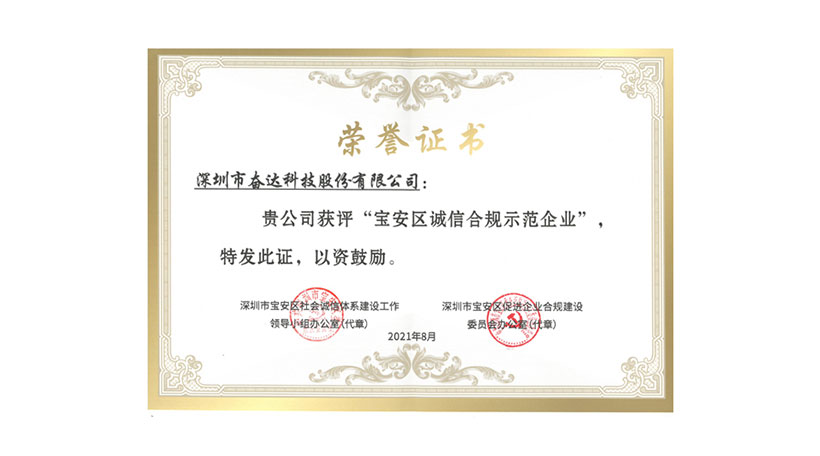 9月9日,宝安区发布首批“3A”信用企业名单及联合激励实施细则,并为宝安区诚信合规示范园区和企业进行授牌。经过自主申报、材料初审、实地考察、专家评审、社会公示等环节综合评定,好博体育科技获批“宝安区诚信合规示范企业”及宝安区“3A”信用企业荣誉称号。
