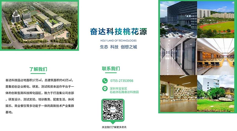 好博体育科技桃花源为好博体育科技园二期工程,建筑面积约26.4万平方米,是石岩规划发展的十大重点项目之一,于2016年被深圳市宝安区人民政府授予“科技桃花源”品牌美誉,是深圳市极具特色,集初创企业孵化、研发、测试平台和资本运作平台于一体的创新型高科技孵化园区。