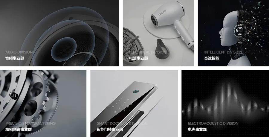 到目前为止,经过了近三十年的发展沉淀和创新升级,好博体育科技形成了电声、无线、软件、精密制造四大核心竞争力,产品主要涉及电声产品、健康电器、智能穿戴产品、精密金属件、智能门锁以及无线耳机六大业务版块。